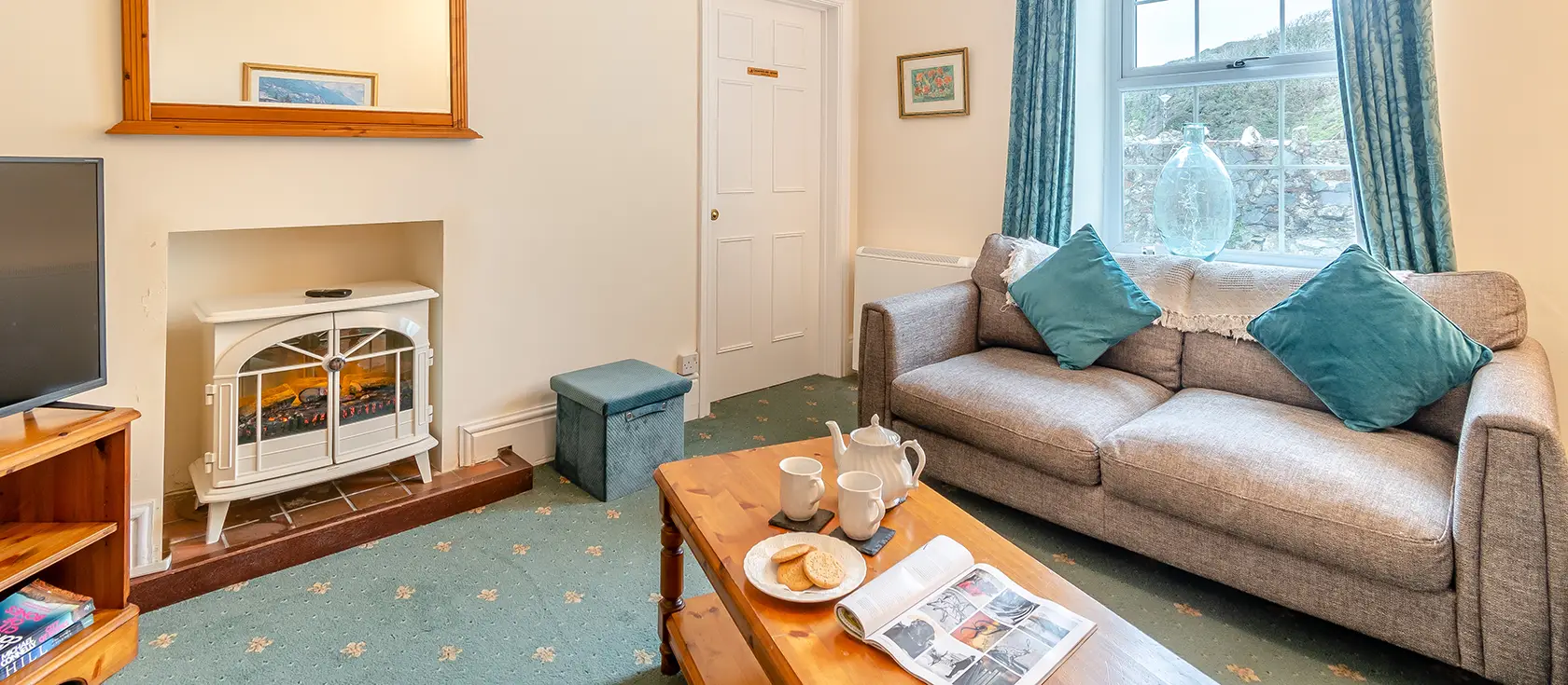 Bridge House, Little Haven, is a charming traditional seafront cottage offering flexible family accommodation with breathtaking coastal views. The well-equipped kitchen features an electric oven and hob, fridge, microwave, dishwasher, and washing machine, flowing into a spacious dining room with seating for seven. Relax in the cosy lounge, where three sofas gather around a coffee table and TV, with an electric wood-burner effect fire beneath the large front window showcasing spectacular sea views.