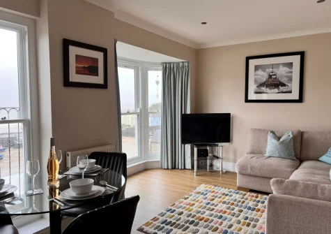 Imagine waking to the gentle sound of waves lapping at the shore, stepping onto your doorstep to embrace the salty sea breeze. Spend sun-drenched days exploring North Beach's golden sands, discovering hidden coves along the famous Pembrokeshire Coast Path, and wandering through Tenby's charming cobbled streets lined with independent shops and galleries. As twilight descends, return to your cosy apartment and savour an evening of rest and coastal contentment.