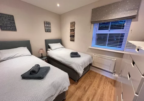 This charming two-bedroom apartment features stylish, nautically themed bedrooms, each thoughtfully designed for comfort. The master double bedroom boasts an en-suite shower room for added convenience, whilst the twin bedroom provides flexibility for families and groups. Whether planning a romantic coastal getaway or a memory-making family holiday, this welcoming retreat embraces you with open arms.