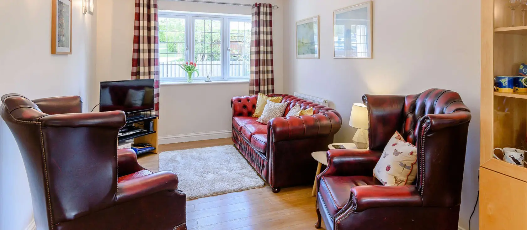 Step into the bright, inviting lounge where soft light streams through French doors opening onto raised decking. Comfortable sofas face the television for cosy evenings, whilst a dining table seats six for sit-down meals. Open the doors on warmer days to enjoy al fresco dining with the fresh Welsh breeze. Outside, the enclosed rear garden features a generous lawn perfect for soaking up the Pembrokeshire sunshine. Raised decking displays garden furniture and a gas BBQ ideal for outdoor dining. Upstairs await three thoughtfully furnished bedrooms: a king-size, a double, and a twin, each with generous windows. The family bathroom includes a shower over the bath for guest comfort.