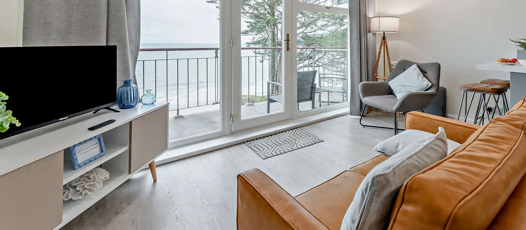 35 Beach Court, Saundersfoot is a charming third-floor apartment offering spectacular sea views and direct access to one of Wales' most beloved coastal destinations. The open-plan kitchen is thoughtfully equipped with an electric hob, oven, fridge with freezer compartment, and microwave—everything you need to prepare delicious home-cooked meals. The elegant dining table provides ample seating for family gatherings, while the adjoining living area invites you to relax and unwind with a Smart TV for those cosy evenings. Step through the sliding doors onto your private balcony, a sun-soaked retreat just 50 metres from the golden sands of Saundersfoot Beach.