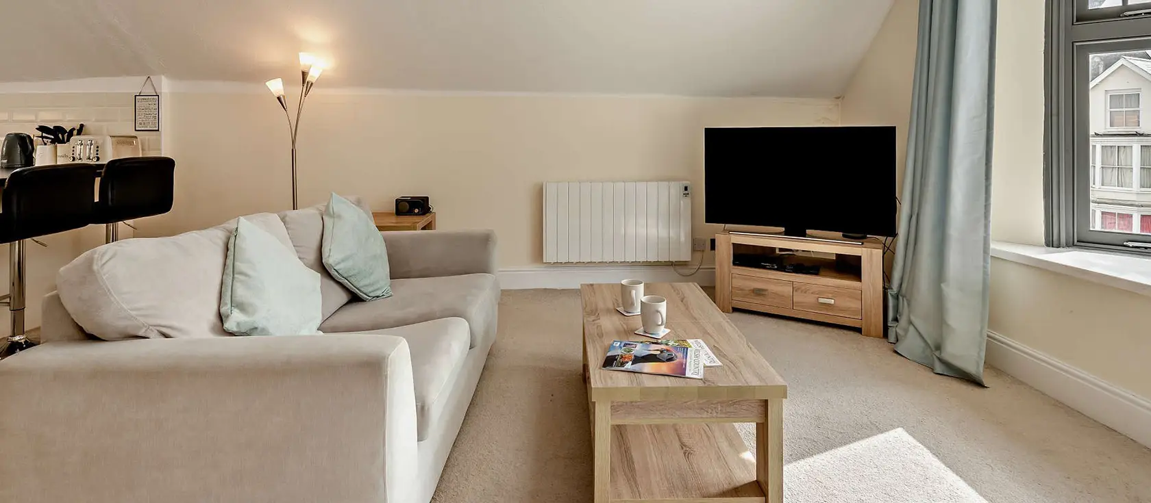 4 Northcliffe House, Tenby is a delightful second-floor apartment positioned perfectly in the heart of this charming coastal town, where everything you need lies within easy reach. The well-equipped kitchen features an electric hob and oven, microwave, fridge / freezer, and dishwasher—everything required for convenient meal preparation. A washing machine provides welcome convenience for longer family stays.