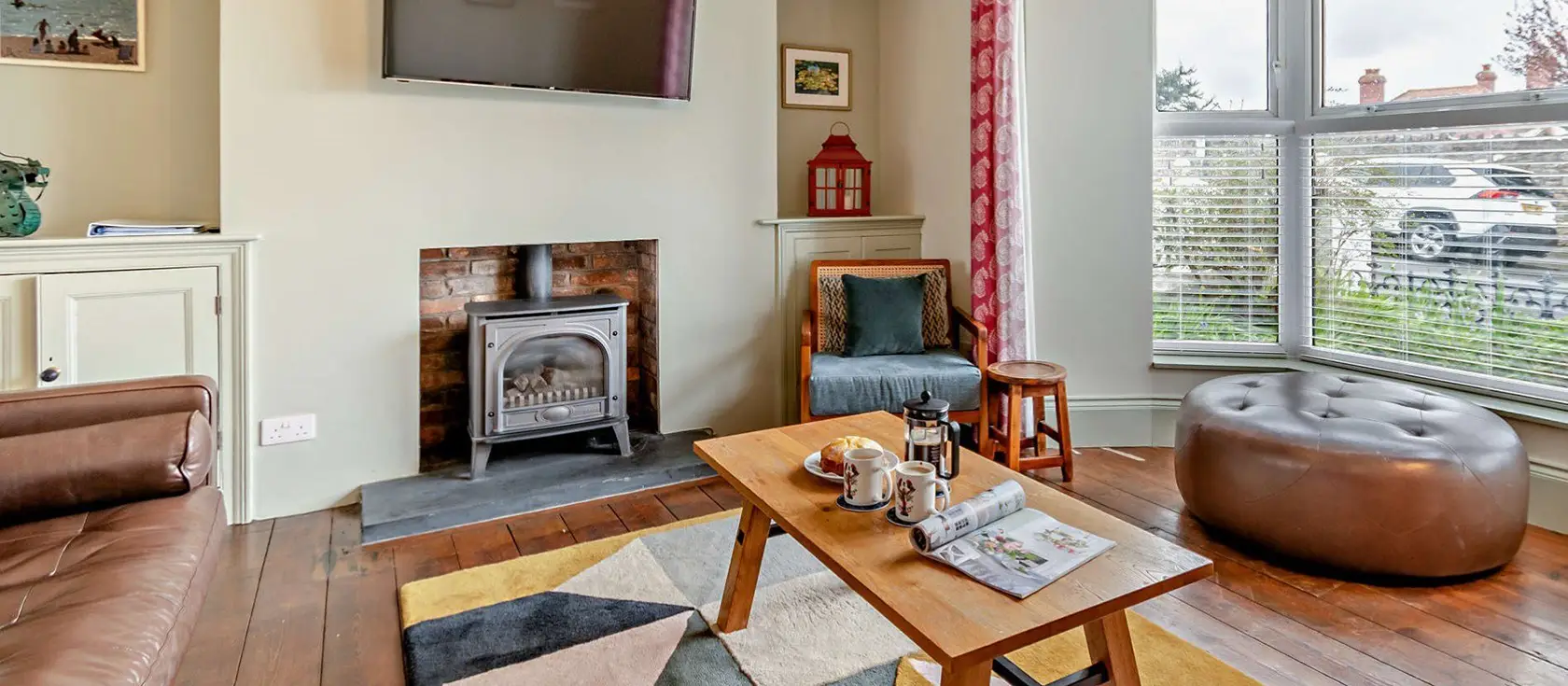 4 Queens Parade, Tenby is a charming four-bedroom cottage brimming with character and genuine coastal appeal. The well-equipped kitchen / diner showcases a traditional gas range oven, integrated appliances including fridge/freezer, microwave, washing machine, and dishwasher, with patio doors opening directly onto the garden for seamless entertaining. The open-plan lounge captivates with two distinct zones: a cosy TV area featuring generous sofas, a wood-burner effect gas fire, and a generous bay window flooding the space with light; a sophisticated reading corner displaying original artwork, bookshelves, and a real fireplace inviting quiet contemplation.
