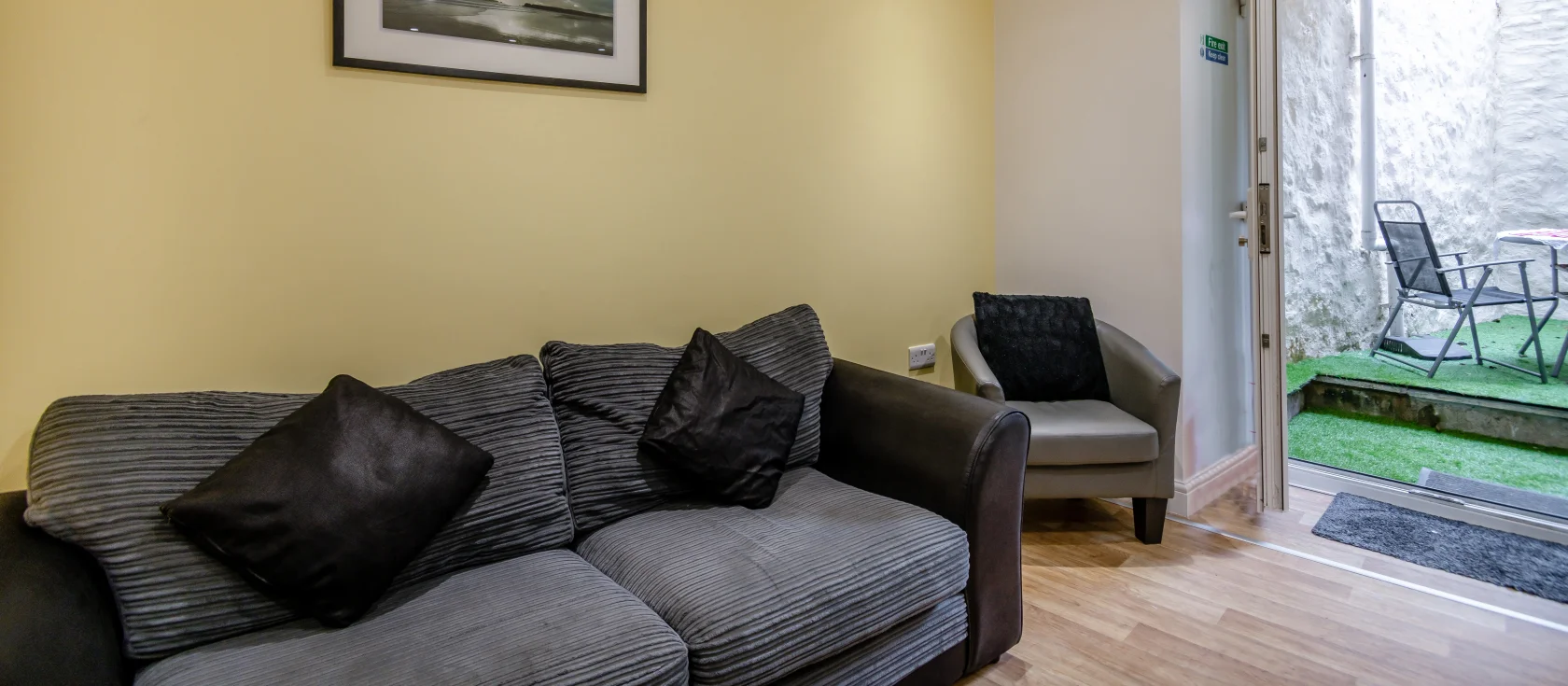 5 The Norton, Tenby is a charming two-bedroom apartment positioned directly opposite the access pathway to North Beach, offering a wonderful coastal escape for families and couples. The well-equipped kitchen features an electric oven and hob, fridge / freezer, microwave, and air fryer, whilst the breakfast bar provides a convenient spot for casual dining. The open-plan lounge welcomes you with comfortable seating including a three-seater sofa and tub chair, a wall-mounted TV / DVD player, and patio doors opening onto a small rear courtyard perfect for storing beach equipment.