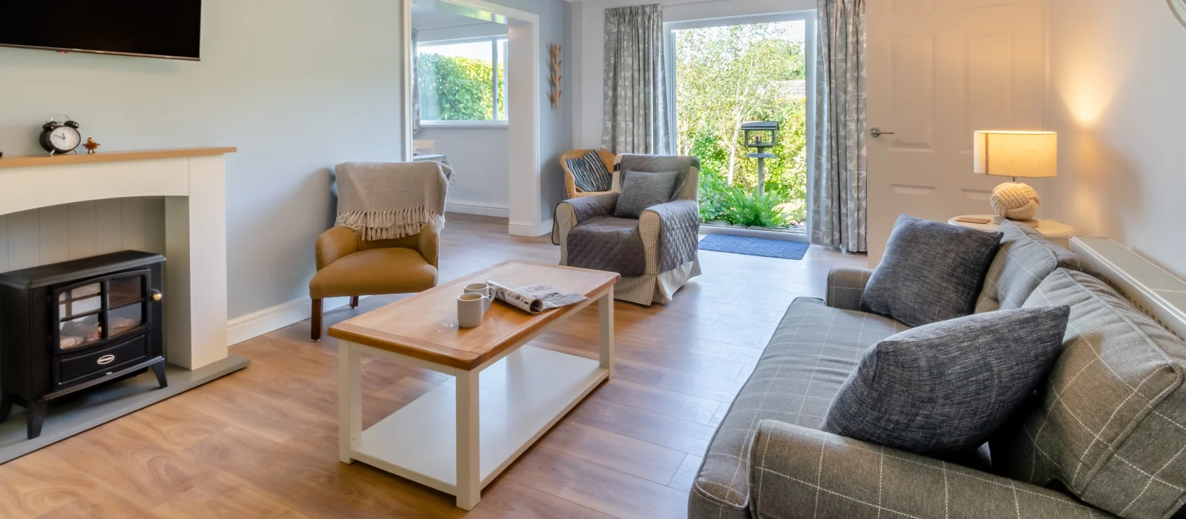 Oak View, Tenby is a welcoming single-storey bungalow tucked away in a peaceful residential area on the outskirts of this beloved Pembrokeshire coastal town. The bright lounge provides a comfortable gathering space with ample seating arranged around a wood burner-effect electric fire and a Smart TV for streaming favourite films and shows. Glass sliding doors open onto the rear garden, flooding the room with natural light and creating a seamless indoor-outdoor connection. The well-appointed kitchen comes complete with an electric oven and hob, microwave, fridge / freezer, dishwasher, and washing machine, whilst the separate dining area offers a sociable table and chairs perfect for family meals and evening board games.