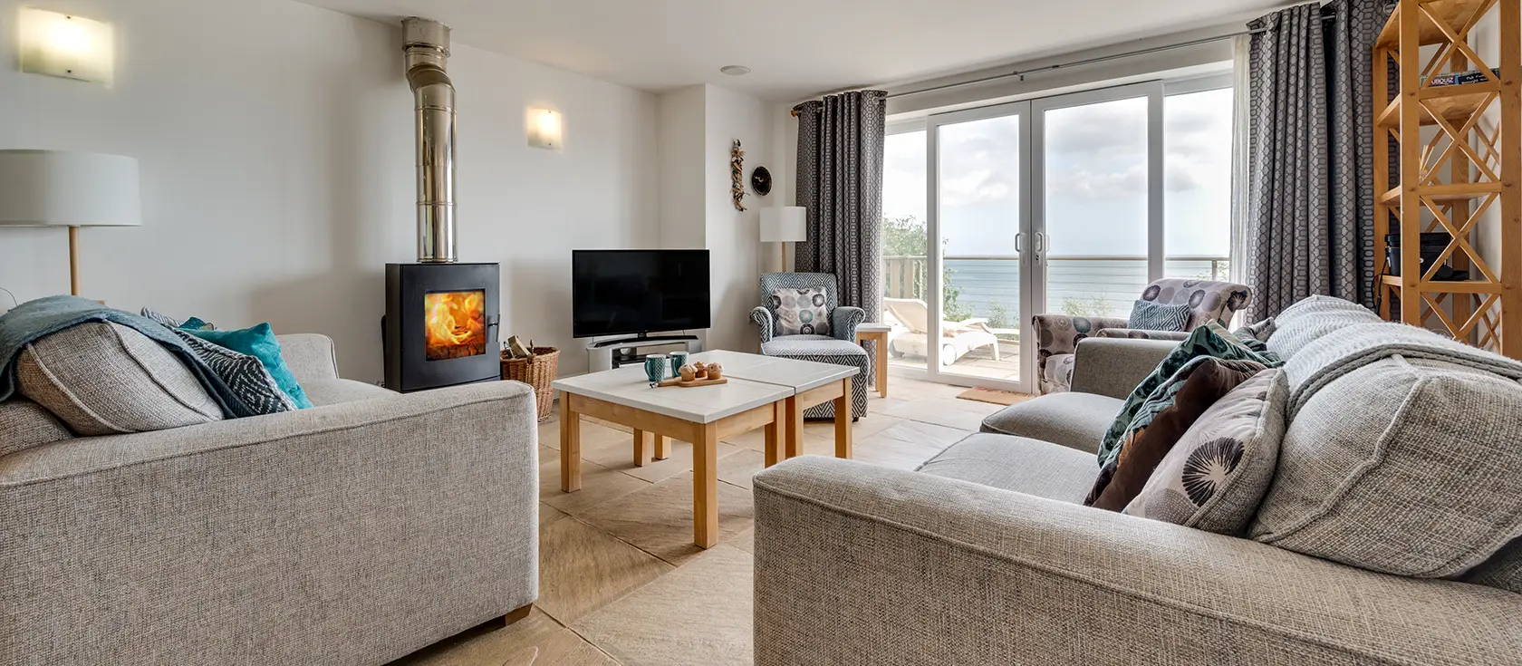 Sunridge, Wisemans Bridge, is a stunning four-bedroom coastal retreat offering mesmerising views across Carmarthen Bay. The fully equipped kitchen features an electric hob, oven, fridge/freezer, microwave, dishwasher, and washing machine, perfect for preparing family feasts. The open-plan lounge and dining area is beautifully furnished with comfortable sofas in soothing grey and blue tones, echoing the colours of sea and sky, while a traditional wood burner creates a cosy atmosphere for cooler evenings. French doors open from the lounge onto a spacious patio, revealing unforgettable seascapes beyond.