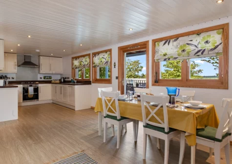 The Bluebell, Penally is a stylish Scandinavian-inspired holiday sanctuary. The heart of this holiday home is its light and airy open-plan kitchen and dining space. Right next to it, you’ll find a cosy dining area that’s the perfect spot to start your day with breakfast and a brew. Head out to the verandah, an oasis to bask in the tranquil surroundings of the neighbouring woodland. Also on the ground floor, there are two comfortable bedrooms and a contemporary family bathroom.