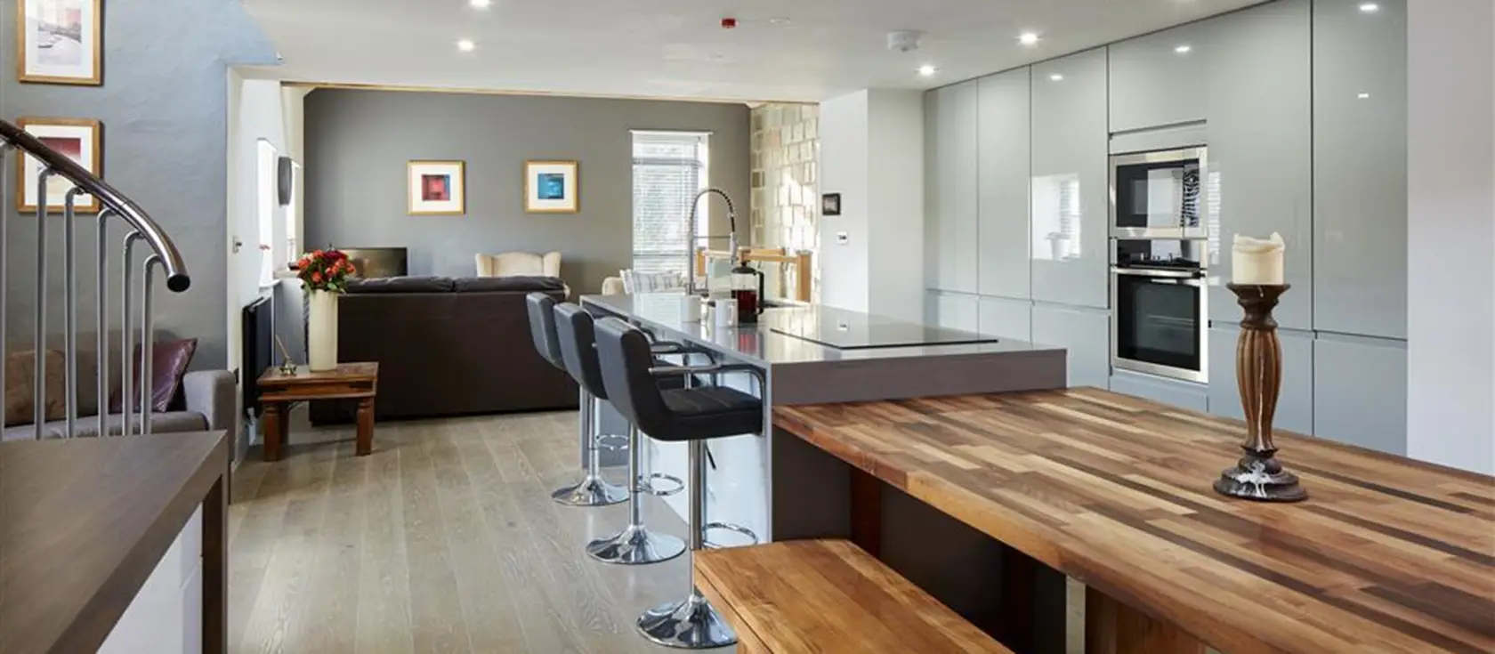 The Coach House, Tenby is a stylish contemporary apartment brimming with character and charm, perfectly positioned to explore the vibrant heart of Pembrokeshire. The modern kitchen is well-equipped with an electric hob, double oven, and a comprehensive suite of appliances including a dishwasher, microwave, and washer / dryer, ensuring meal preparation is effortless. The spacious lounge features a wood burner-effect fire, creating a warm ambiance for cosy evenings, whilst a television ensures entertainment is never far away.